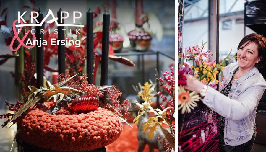 Krapp Floristry presents an impressive Christmas exhibition, curated by guest florist Anja Ersing. The atmospheric Advent and Christmas splendour is particularly impressive with its modern, bold decorations in red and black. Anja has also created woolly accents with the STYLIT trend boxes and created extraordinary works that attract attention.